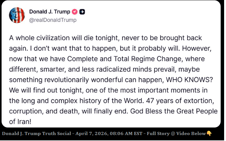 But the social media post Trump put up for Easter weekend was a tipping point. Futile as it seems, it is time to put some rage back on the screen. Trump’s post is the product of one sick mind. It is vile. It is reckless. It is a disgrace to 250 years of American history. How could anyone condone this post coming from the man who is supposed to be the leader of the nation? It confounds me.