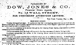 Dow figured if one responsible news service could succeed there was room for more, and with a fellow reporter, Edward Jones, founded Dow, Jones & Company. The pair produced newsletters and summaries of financial news, which they delivered to financial institutions and investors. Their “Customer’s Afternoon Letter” quickly grew to have more than 1,000 subscribers.
