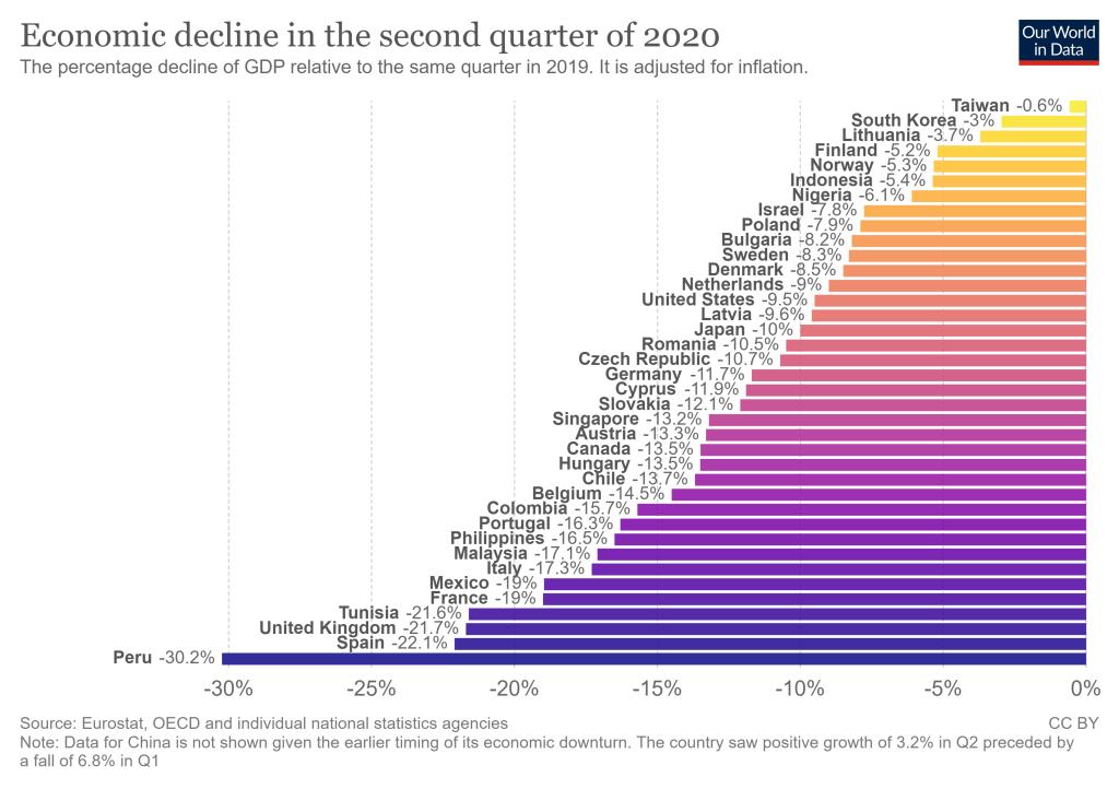 According to the site Our World in Data, maintained by Oxford University, the U.S. economy has done better than some, worse then others with a 9.5% decline (year to year comparison) in GDP for the second quarter of 2020. I’ll let you judge that one for yourself. All I know is: SICK ECONOMIES RECOVER. DEAD PEOPLE DO NOT.