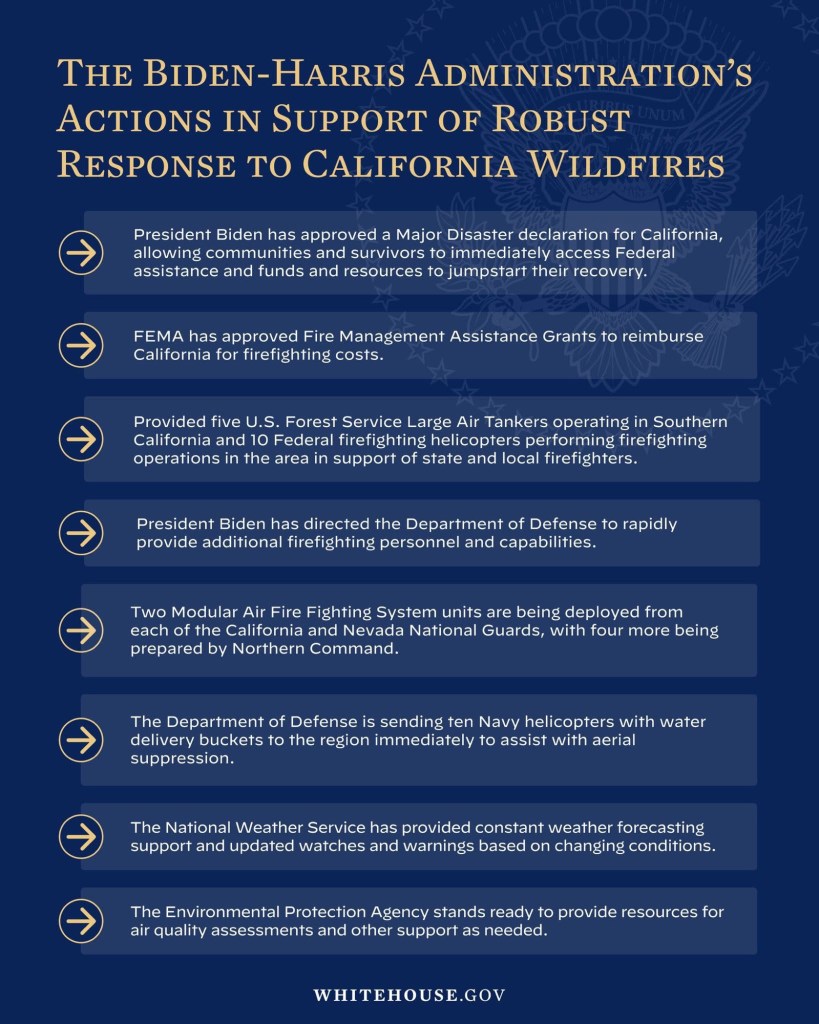 Trump‘s insensitive and absurd lies were seconded by his co-president in waiting, Elon Musk, who blames California regulations for the fires. Trump also blamed President Joe Biden today for the fires.