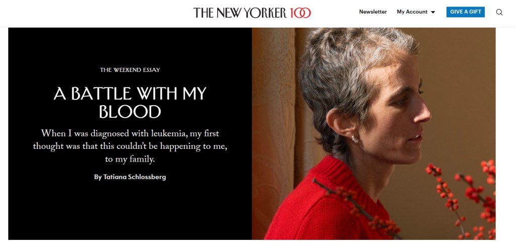 And just to show you how personal this can get, consider an essay in The New Yorker magazine. The author is Tatiana Schlossberg and she chronicles her battle with leukemia, a diagnosis she received moments after the birth of her daughter in 2024, before the confirmation of her cousin Robert F. Kennedy, Jr., who she calls “Bobby.”