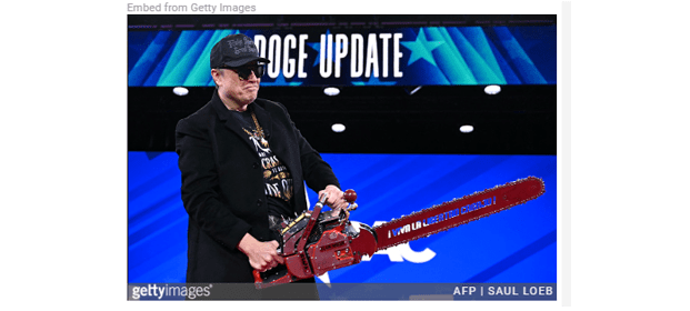 Who else would gleefully prance around a stage carrying a chainsaw and celebrating “feeding the United States Agency for International Development into the woodchipper?” That act alone left poor people around the world to starve while food already purchased by USAID from American famers rotted in warehouses. What kind of a monster does something like that and cheers about it?